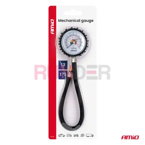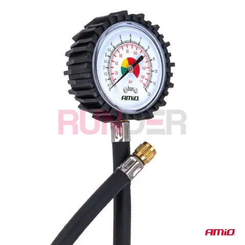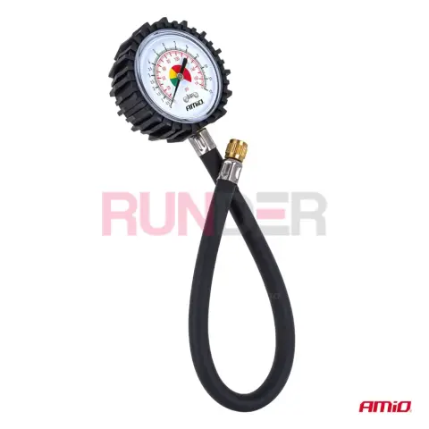 AMIO analogový manometr je praktický mechanický tlakoměr určený pro rychlou kontrolu tlaku v pneumatikách bez potřeby napájení. Díky přehlednému ciferníku a flexibilní hadici délky 30 cm umožňuje snadný odečitatelný měřicí proces i na těžko přístupných ventilech.