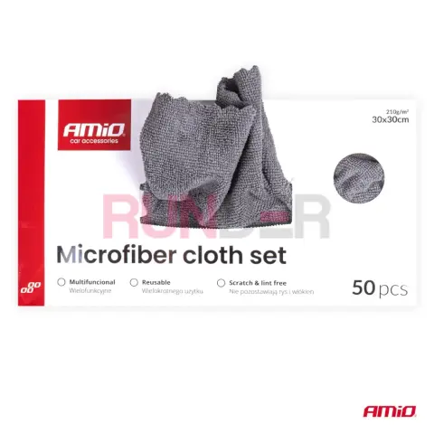 AMIO jsou praktické utěrky z mikrovlákna v ekonomickém balení 50 kusů v kartonovém boxu. Každá utěrka má gramáž 210 GSM a rozměry 30×30 cm, je složená z 80 % polyesteru a 20 % polyamidu, což zajišťuje vysokou savost, odolnost a efektivní čištění bez šmouh. Utěrky jsou opakovaně pratelné a opakovaně použitelné, ideální do dílen, myček, servisů i domácností.