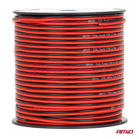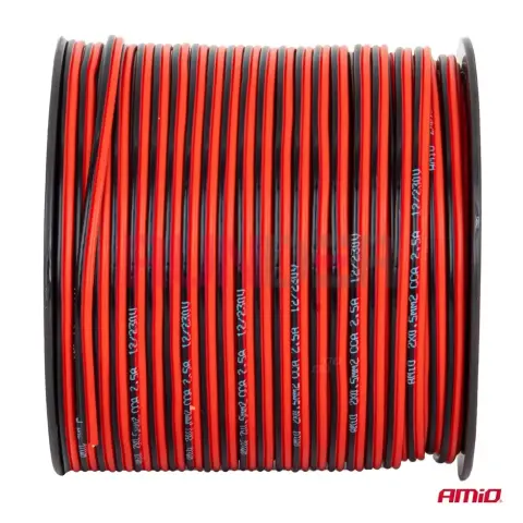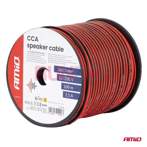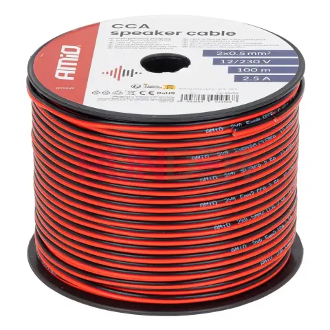 AMIO Dvouvodičový vodič reproduktoru CCA 2x0,5 mm² 100 m 2,5 A je ekonomické a praktické řešení pro základní audio instalace. Vodič vyrobený v technologii CCA (Copper Clad Aluminium) kombinuje nízkou hmotnost a nižší náklady při zachování přijatelných elektrických vlastností pro systémy s menším výkonem. Průřez 2x0,5 mm², navinutý na cívce 100 m, je ideální pro domácí ozvučení, jednoduché PA instalace, car-audio nebo přenosné sety s nízkým odběrem.
