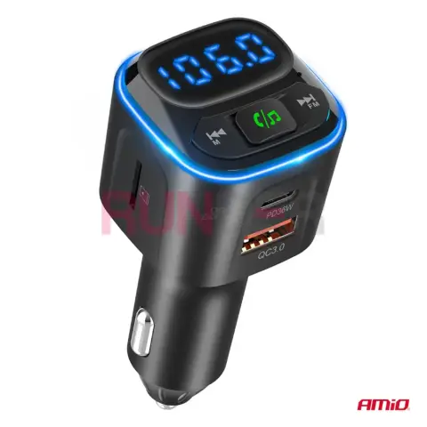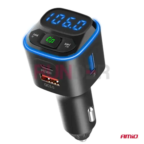 AMIO FM transmitter 1×USB-A 2×USB-C 12 V / 24 V je pokročilý FM vysílač s Bluetooth, který promění klasické autorádio bez moderní konektivity na multimediální centrum do auta. Umožňuje bezdrátové přehrávání hudby přes Bluetooth, podporuje microSD karty, přehrávání z USB klíče a díky třem nabíjecím portům dokáže současně napájet více zařízení. Vestavěný mikrofon a režim hands-free zajistí pohodlné a bezpečnější telefonování během jízdy.