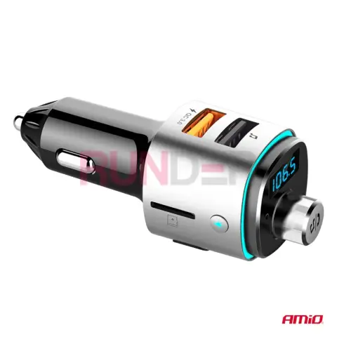 AMIO FM vysílač 2×USB-A microSD 12 V / 24 V je praktický FM transmitter s Bluetooth a funkcí hands-free, který umožňuje přehrávání hudby z více zdrojů a bezpečnější telefonování během jízdy. Díky otočnému ovládacímu kolečku je manipulace s hlasitostí, frekvencí a hovory rychlá a intuitivní, bez zbytečného odpoutávání pozornosti od cesty.