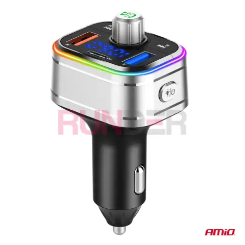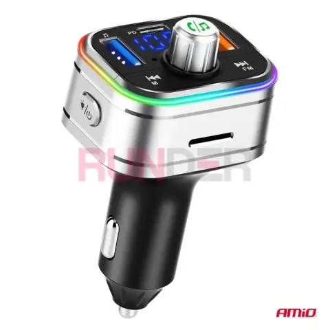 AMIO FM transmitter 1×USB-C microSD 12 V / 24 V je multifunkční FM vysílač s Bluetooth a otočným ovládacím kolečkem, navržený pro auta s klasickým rádiem bez Bluetooth. Umožňuje bezdrátové přehrávání hudby, telefonování v režimu hands-free a díky kombinaci USB-A, USB-C a microSD z něj uděláš plnohodnotné multimediální centrum v jakémkoli vozidle.