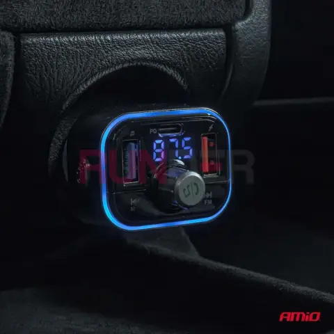 AMIO FM transmitter 1×USB-C microSD 12 V / 24 V nabízí Bluetooth připojení, podporu USB a microSD, tři nabíjecí porty, hands-free telefonování a intuitivní ovládání pomocí otočného kolečka, díky čemuž jednoduše změní i starší autorádio na moderní multimediální systém s vyšším komfortem, bezpečnějším telefonováním a flexibilním nabíjením zařízení během každé jízdy.