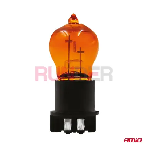 AMIO Halogenová žárovka PWY24W WP3.3x14.5-4 Amber 12V 24W je specializovaná žárovka určená pro směrová světla v moderních automobilech. Vydává intenzivní jantarové (amber) světlo, které splňuje požadavky silničních norem a zaručuje jasnou a bezpečnou signalizaci při změně směru jízdy. Díky standardní patici WP3.3x14.5-4 je kompatibilní s mnoha modely aut, zejména s reflektory se složenými moduly.