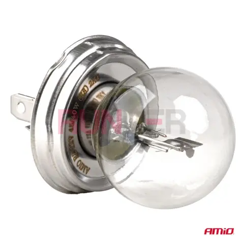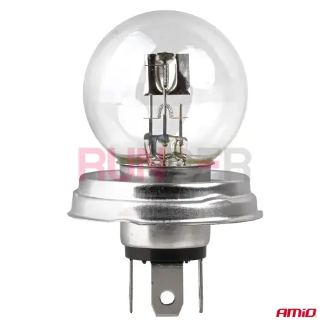 AMIO R2 (P45t) je klasická halogenová žárovka se dvěma vlákny určená pro automobilové reflektory. Kombinace 45 W (dálková světla) a 40 W (tlumená světla) zajišťuje silný, stabilní světelný kužel v různých jízdních podmínkách. Standardní patice P45t a homologace ECE R37 (E8) zaručují jednoduchou montáž a legální použití na silnicích.