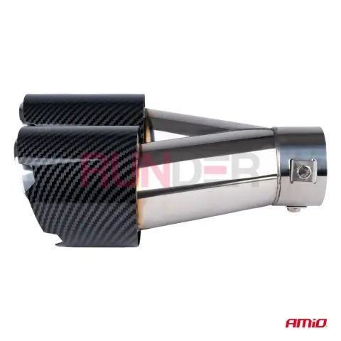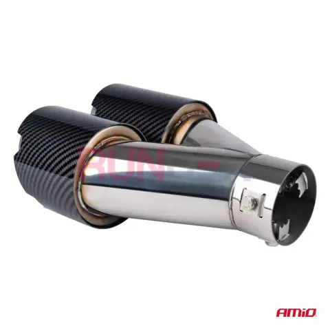 AMIO dvojitá pravá koncovka výfuku přináší vozidlu výrazný sportovní a prémiový vzhled. Kombinace nerezové oceli s carbon dekorem zajišťuje odolnost proti korozi i atraktivní design. Díky univerzálnímu upínacímu systému je montáž rychlá — buď pomocí svorky bez svařování, nebo pevněji přišroubováním či přivařením.