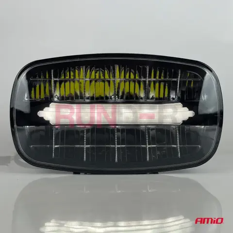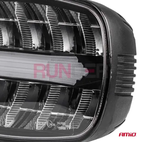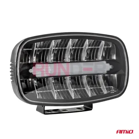 AMIO LED dálkový reflektor je výkonné a odolné osvětlení určené pro off-road vozidla, užitkové a pracovní stroje; poskytuje výkon 109 W, světelný tok 7000 lm při teplotě barvy 6000 K, pracuje v rozsahu napětí 9–36 V (12 V / 24 V) a je vybaven funkcí pozičních světel. Tělo reflektoru je pevné a odolné (rozměry 245 × 160 × 73 mm), navrženo pro provoz v náročných podmínkách, a reflektor má příslušné homologace E24, ECE R148, ECE R149.