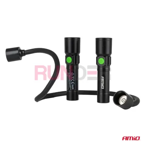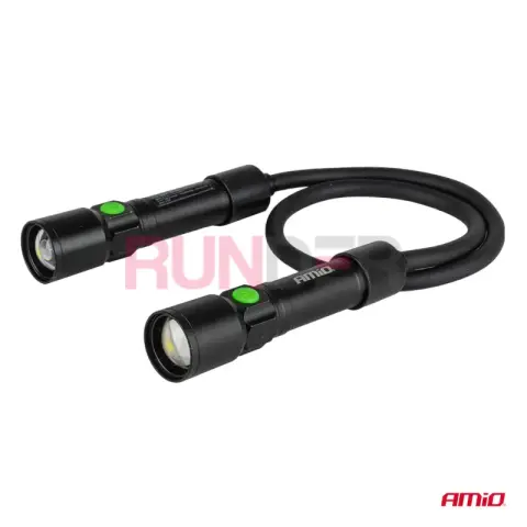 AMIO LED kontrolní/inspekční baterka je praktická lampa na krk, ideální do dílny, servisu, oprav i práce v terénu. Díky ergonomické konstrukci vám ponechá volné ruce a světlo si nasměrujete přesně tam, kde ho potřebujete. Tělo je vyrobeno z odolných materiálů hliník + PP a o silné osvětlení se starají 2× LED P50, které poskytují výrazný bodový světelný paprsek.