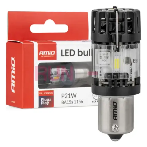 AMIO LumiTec BA15S (P21W) 12V FULL CANBUS je výkonná LED žárovka ze série LUMITEC, určená jako moderní náhrada klasické žárovky BA15S P21W. Díky systému FULL CANBUS funguje spolehlivě ve většině 12V vozidel a pomáhá eliminovat hlášení o „spálené žárovce“ na palubní desce. Poskytuje intenzivní, čisté bílé světlo, které zlepšuje viditelnost a dodává osvětlení modernější vzhled.