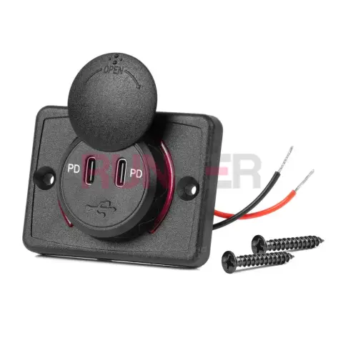Moderní, odolná a stylová čtvercová nabíječka určená do vozidel, lodí i pracovních strojů. Dva USB-C porty umožňují současné napájení dvou moderních zařízení bez zbytečného kabelového nepořádku. Díky univerzálnímu napětí 12/24 V ji můžete bezpečně používat v osobních autech, dodávkách, kamionech i na palubě člunů. Vodotěsná konstrukce zajišťuje spolehlivý provoz i při zvýšené vlhkosti, červené LED podsvícení usnadňuje orientaci ve tmě a působí designově.