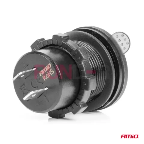 AMIO Nabíječka do auta 2x USB-C s testerem napětí 12/24V vodotěsná