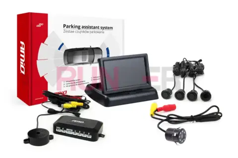 Tento parkovací asistent je navržen tak, aby poskytoval maximální podporu při couvání a parkování. Kombinuje širokoúhlou zadní kameru HD-307-IR s IR přisvícením, 4 zadní senzory, LCD displej s úhlopříčkou 4,3" a řídicí jednotku s video mixérem. Všechny komponenty pracují automaticky po zařazení zpátečky