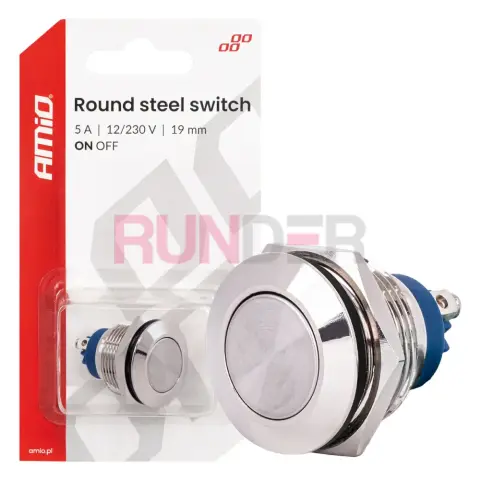 AMIO ocelový vypínač 19 mm ON/OFF – spolehlivý, elegantní a odolný přepínač pro každé zařízení.