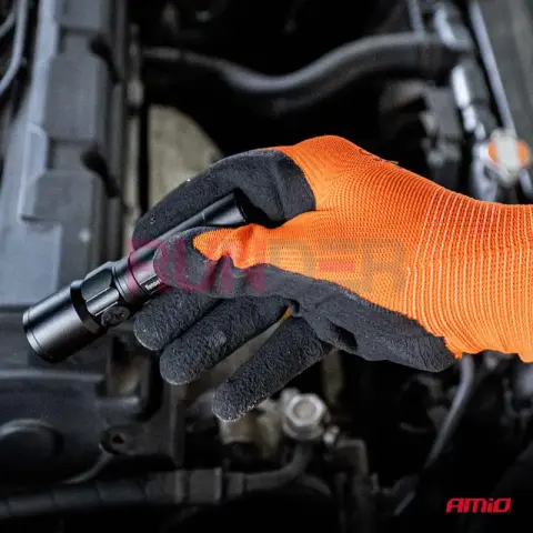 AMIO polyesterové pracovní rukavice s povrchem z latexové pěny (latex foam) jsou pohodlné a spolehlivé rukavice určené pro práce, kde je důležitý pevný úchop, tlumení a komfort i při delším nošení. Základ tvoří pružná a prodyšná polyesterová pletenina, která se dobře přizpůsobí ruce. Povrch z latexové pěny poskytuje výbornou přilnavost, a to zejména při manipulaci v mírně vlhkém prostředí nebo na hladších površích.
