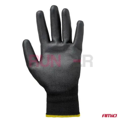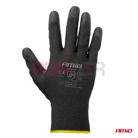 AMIO PU ochranné rukavice jsou kvalitní pracovní rukavice určené pro přesné práce, kde je důležitý pevný úchop, cit v prstech a komfort. Jsou vyrobeny z pružné a prodyšné pleteniny a v dlani potaženy odolnou polyuretanovou (PU) vrstvou, která zvyšuje přilnavost a zároveň pomáhá chránit ruce při každodenní práci.