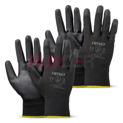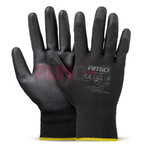 AMIO PU ochranné rukavice jsou kvalitní pracovní rukavice určené pro přesné práce, kde je důležitý pevný úchop, cit v prstech a komfort. Jsou vyrobeny z pružné a prodyšné pleteniny a v dlani potaženy odolnou polyuretanovou (PU) vrstvou, která zvyšuje přilnavost a zároveň pomáhá chránit ruce při každodenní práci.