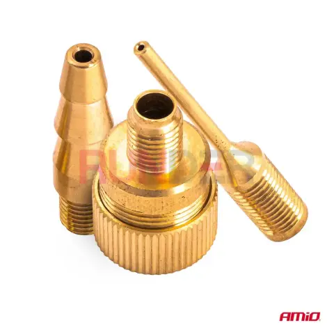 Univerzální sada adaptérů AMIO je určena k připojení nafukovacích pistolí nebo kompresorů k ventilům s vnitřním závitem M16 × 1,5. Díky redukci na hadici o průměru 8 mm umožňuje rychlé, bezpečné a pohodlné nafukování pneumatik a jiných zařízení.