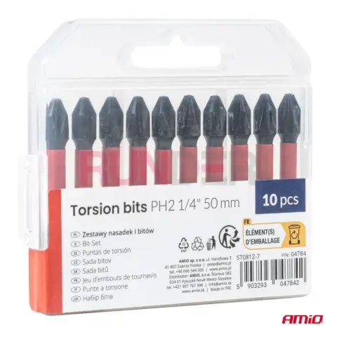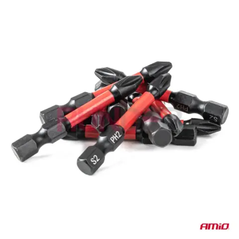 AMIO bity PH2 Torsion 50 mm jsou profesionální šroubovací bity určené pro intenzivní montážní a servisní práce. Díky torzní (zkrutné) zóně lépe tlumí nárazové přetížení, čímž pomáhají chránit hrot před poškozením a prodlužují životnost bitu – ideální i při práci s rázovými utahováky.
