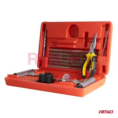 AMIO opravná sada na bezdušové pneumatiky (38 ks) je určená pro rychlou a účinnou opravu propíchnutí bezdušových pneumatik bez nutnosti demontáže. Hodí se pro osobní auta, SUV, čtyřkolky i motocykly a je ideální jako výbava do auta, pro dílny i mobilní pneuservisy. Souprava obsahuje všechny potřebné nástroje a opravné knoty, které pomáhají dosáhnout pevného a trvanlivého utěsnění.