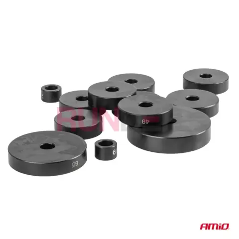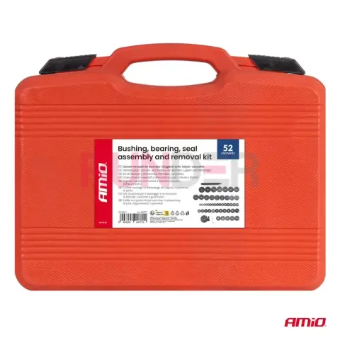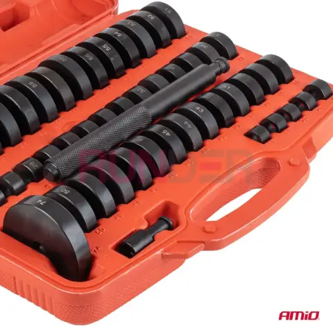 AMIO 52dílná sada adaptérů pro montáž a demontáž je kompletní systém určený pro osové (rovné) osazování a vytahování ložiskových kroužků, pouzder, těsnění (simeringů) a dalších usazených dílů. Díky široké škále průměrů pomáhá vybrat správný adaptér tak, aby se síla přenášela rovnoměrně po obvodu – tím se snižuje riziko poškození sedla, nového ložiska nebo hran těsnění.
