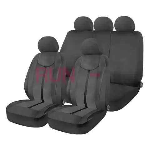 Kompletní 9dílná sada pro osobní vozidla z odolné tkaniny se zvýšenou odolností proti oděru a znečištění. Potahy jsou kompatibilní s bočními airbagy v sedadlech (SRS) – konstrukce neblokuje jejich aktivaci. Plně kryté zadní části předních potahů chrání celá opěradla a zlepšují vzhled interiéru i pro cestující vzadu.