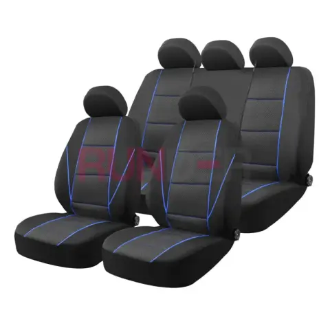Kompletní 9dílná sada pro osobní vozidla z odolné tkaniny se zvýšenou odolností proti oděru a znečištění. Potahy jsou kompatibilní s bočními airbagy v sedadlech (SRS) – konstrukce neblokuje jejich aktivaci. Plně kryté zadní části předních potahů chrání celá opěradla a zlepšují vzhled interiéru i pro pasažéry vzadu.