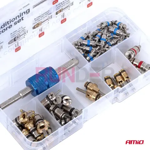Profesionální souprava ventilů určená k servisu a opravám klimatizačních systémů v automobilech a chladicích zařízeních. Obsahuje až 61 kvalitních komponentů, které umožňují rychlou, přesnou a spolehlivou výměnu ventilů v klimatizačních okruzích. Díky odolným materiálům a univerzálnímu složení je ideální pro autoservisy, AC servisy i techniky provádějící údržbu klimatizací.