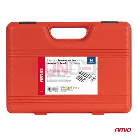 AMIO setrvačné kladivo na stahování ložisek 8–58 mm je profesionální demontážní systém určený pro vytahování kuličkových a jehlových ložisek, pouzdra a dalších osazených dílů zejména z neprůchozích (slepých) otvorů. Díky rozpínacím pouzdrům pokrývá široký rozsah průměrů a umožňuje bezpečnou práci bez zbytečného rizika poškození sedla ložiska.