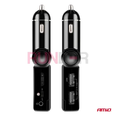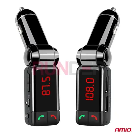 AMIO Skládací FM vysílač do auta 2×USB-A 12 V / 24 V je kompaktní FM transmitter s Bluetooth, navržený se skládací a regulovatelnou konstrukcí pro snadné přizpůsobení interiéru vozidla. Umožňuje bezdrátové přehrávání hudby z telefonu a telefonování v režimu Hands-free i v autech se starším rádiem bez Bluetooth. Díky dvěma USB portům umí zároveň nabíjet zařízení nebo přehrávat hudbu z USB klíče.