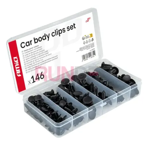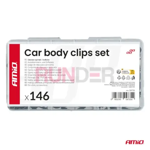 AMIO sada spon a příchytek 146 ks je praktický set pro rychlé opravy a montáž interiérových i karosářských plastů. Obsahuje mix nejpoužívanějších spon, klipů a montážních kolíků, díky čemuž snadno nahradíš poškozené nebo chybějící úchyty při demontáži čalounění, panelů, lišt či plastových krytů.