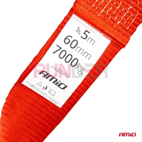 Tažný popruh AMIO je spolehlivým pomocníkem při tažení osobních i užitkových vozidel do hmotnosti až 7 000 kg. Vyrobený z pevného a odolného polyesterového materiálu o šířce 60 mm, zaručuje vysokou pevnost, odolnost proti oděru a dlouhou životnost i při náročném používání.