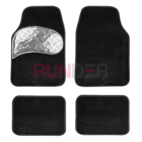 Univerzální 4dílná sada textilních rohoží pro širokou škálu osobních aut. Odolný materiál chrání podlahu před nečistotami a opotřebením, snadno se čistí a zlepšuje celkový vzhled interiéru. Protiskluzová spodní vrstva omezuje posouvání během jízdy pro vyšší komfort a bezpečnost.