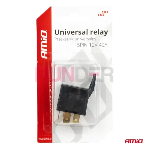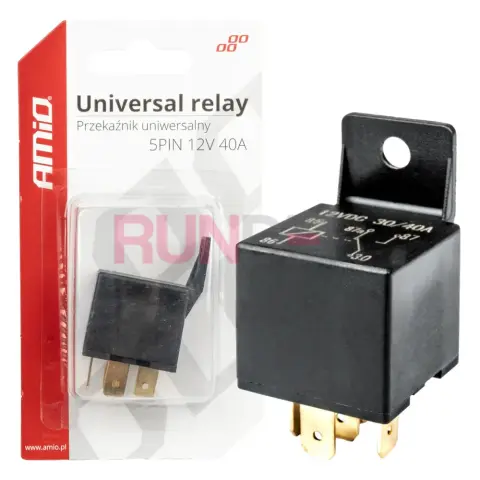 AMIO relé je univerzální automobilový spínač určený pro řízení spotřebičů s napětím 12 V a proudovým odběrem do 40 A. Vhodné pro spínání světel, ventilátorů, čerpadel, autoalarmů, blokád zapalování a dalších obvodů v autě. Relé má vestavěný montážní úchyt, kvalitní materiály a precizní zpracování pro dlouhodobý a bezpečný provoz.