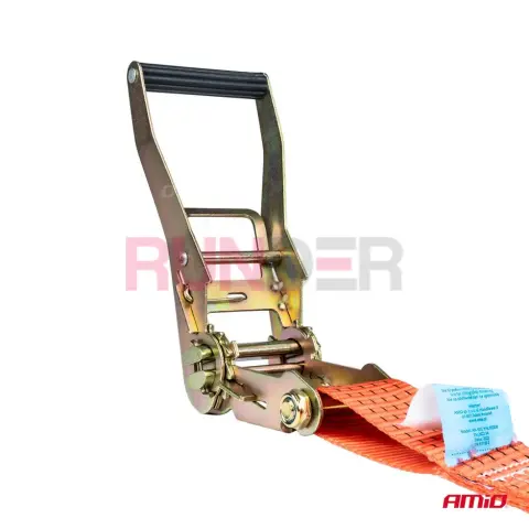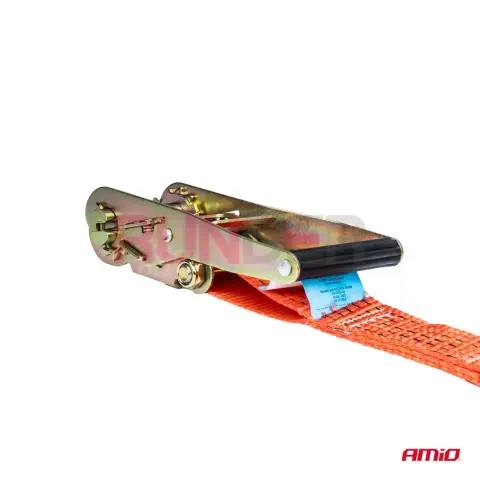 AMIO Upínací popruh s ráčnou 5000 kg 50 mm 6 m je kompletní dvoudílný transportní popruh navržený pro náročné zatížení. Díky vysokopevnostnímu materiálu, pevné ráčně a odolným kovovým prvkům z antikorozní oceli zajistí spolehlivé a bezpečné upevnění nákladu při profesionální i soukromé přepravě. Ideální řešení pro dopravu, stavebnictví, flotily i pro běžné uživatele, kteří potřebují jistotu při přepravě těžších břemen.