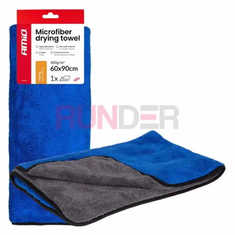 AMIO utěrka na sušení s velmi vysokou gramáží 800 GSM a kompaktními rozměry 60×90 cm je navržena pro rychlé a bezešvé osušení vozidla při detailních pracích a v těžko dostupných místech. Díky dvouvrstvé konstrukci poskytuje maximální savost, zkrácený čas sušení a bezpečné ošetření laku, skla i plastů bez vzniku mikroškrábanců.