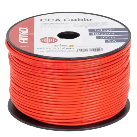 Jednožilový vodič AMIO 1×1 mm² CCA je určený pro lehké elektroinstalace v systémech 12 V i 230 V. Vyrobený technologií CCA (Copper Clad Aluminium) — hliníkový vodič s měděným povrchem — poskytuje dobrou vodivost, nízkou hmotnost a cenovou dostupnost. Díky červené izolaci je rychle rozpoznatelný v kabelážích a praktická 100 m rolka je ideální pro střední až větší projekty.