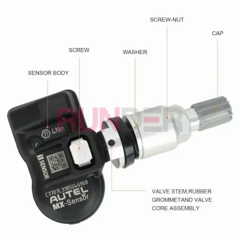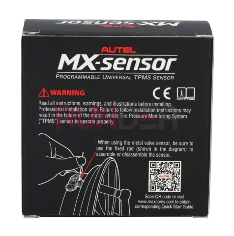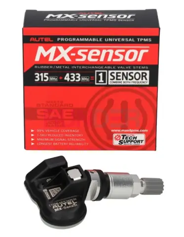 AUTEL MX-SENSOR SCREW IN je univerzální programovatelný TPMS senzor s kovovým (screw-in / clamp-in) ventilem a dvojitou frekvencí 315 + 433 MHz. Jeden typ senzoru tak dokáže nahradit téměř všechny originální TPMS senzory na trhu a pokrývá až přibližně 98 % vozidel s TPMS. Senzor je 100 % klonovatelný podle ID původního senzoru, takže při použití stejného ID na téže pozici často není potřeba další „relearn“ přímo ve vozidle.