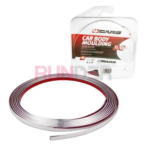 Nalepovací boční lišty v rozměru: 12mm x 3mm x 5m, chromový design. Univerzální použití. Před nalepením je třeba zvolené části karoserie důkladně vyčistit a odmastit. Lišty odstřihněte v požadovaném rozměru. Teplota při montáži nesmí klesnout pod 18 °C. 24 hodin. po montáži nečistěte vozidlo v automyčce. Návod k použití: 1. Před instalací důkladně vyčistěte povrch a odstraňte případně zbytky vosku nebo oleje. 2. Upravte délku podle potřeby a nakreslete čáru na karoserii auta. Při seřezávání délky musíte dbát na to, aby lišta nebránila otevírání dveří (je nutné nechat alespoň 1 cm odstup nebo vyřízněte úhel na počátečním konci lišty). 3. Úhlové zářezy na každém konci lišty provádějte nožem nebo brusným kotoučem, abyste tak vylepšili vzhled. 4. Odstraňte ochrannou fólii a nalepte lištu podél nakreslené čáry, zabraňte ušpinění gumy a nechytejte ji prsty. 5. Zatlačte rovnoměrně na lištu, aby byla pevně uchycena. 6. Teplota by měla být více než 18°C. Je-li nižší zahřejte gumový povrch horkým vzduchem, abyste dosáhli důkladného uchycení. 7. Následujících 24 hodin po instalaci nemyjte auto automatickou myčkou.