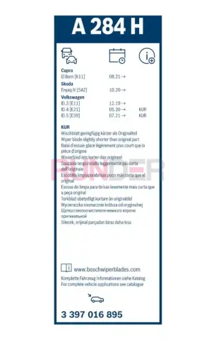 Bosch A 284 H je kvalitní zadní bezrámový stěrač Bosch Aerotwin o délce 280 mm (kód 3 397 016 895 / 3397016895). Bezrámová konstrukce (flat/beam) zajišťuje rovnoměrný přítlak po celé délce stírací lišty, což přináší čištění beze šmouh, tišší chod a stabilní stírání i v náročnějších povětrnostních podmínkách.