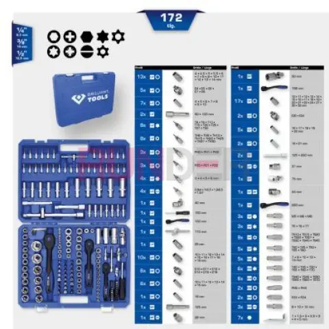 Zeptejte se nás ohledně produktu: Brilliant - Gola sada 1/2", 1/4", 3/8", 172ks