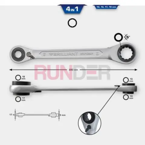 Zeptejte se nás ohledně produktu: Brilliant - Oboustranný ráčnový očkový klíč 10x13, 17x19mm