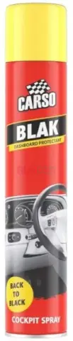 CARSO BLACK COCKPIT SPRAY je připravený sprej na čištění a oživení vnitřních plastových, vinylových a gumových povrchů vozidla. Rychle odstraňuje prach, mírné nečistoty a zbytky mastnoty a zároveň dodává povrchům hluboký černý lesk bez lepivého zbytku.