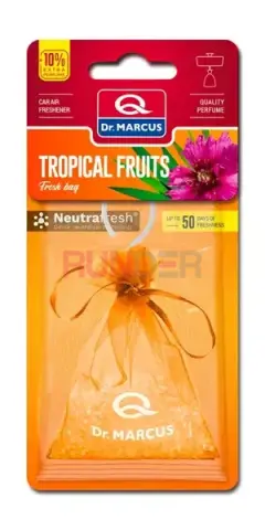 DR. MARCUS FRESH BAG - Sáčková vůně Tropical Fruits je víceúčelový závěsný osvěžovač vzduchu v podobě elegantního sáčku naplněného polymerovými kuličkami nasáklými kvalitním parfémem. Vůně tropického ovoce přináší sladké, exotické a energické aroma, které připomíná léto, dovolenou a slunečné dny – ideální do auta, šatníku i domácnosti.