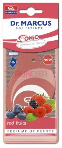DR. MARCUS SONIC - Závìsný osvěžovač vzduchu Red Fruits je klasický celulózový přívěsek na zrcadlo s moderním tvarem, napuštěný kvalitní parfémovou kompozicí. Vůně Red Fruits je sladká, ovocná a výrazná – kombinuje tóny červeného ovoce a dodá interiéru svěží, energickou a veselou atmosféru.