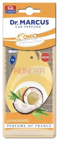 DR. MARCUS SONIC - Závěsný osvěžovač vzduchu s vůní Piňakolády je klasický celulózový přívěsek na zrcadlo s moderním tvarem, napuštěný kvalitní parfémovou kompozicí. Vůně Pina Colada spojuje sladké tóny ananasu a kokosu – působí exoticky, hravě a nepřehlédnutelně dovolenkově, takže dodá interiéru auta uvolněnou, příjemnou atmosféru.
