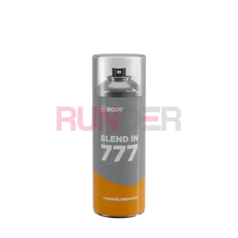 HB BODY 777 BLEND-IN je speciální přístřikové ředidlo ve spreji, určené pro míchání a rozlévání (blendování) vrchních nátěrů při lokálních opravách laků. Pomáhá zjemnit a „ztratit“ přechody mezi původním a novým lakem, aby byl opravovaný díl vizuálně jednolitý bez viditelného okraje stíkání. Ideální pro profesionální lakovny i menší karosářské opravy.