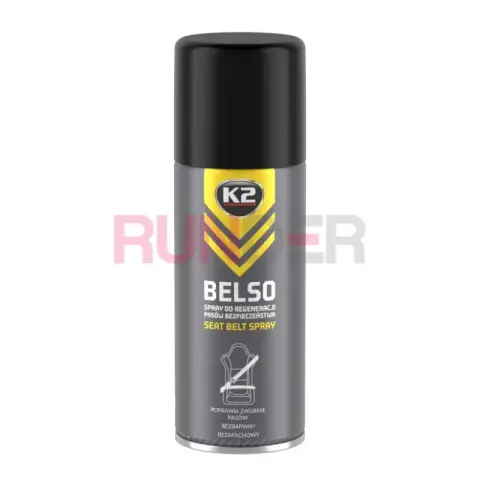 K2 BELSO je specializovaný sprej na regeneraci a údržbu bezpečnostních pásů, který obnovuje povrchovou vrstvu pásu, snižuje tření a vrací pásům plynulý chod bez nutné mechanické výměny napínače. Produkt zlepšuje funkčnost pásů, zabraňuje zadrhávání a navíc chrání tkaninu před UV zářením a statickou přitažlivostí.