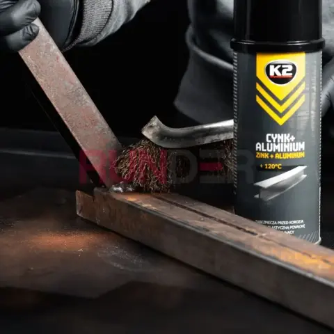 K2 ZINC + ALUMINUM je rychleschnoucí zinkovo-hliníkový sprej určený na ochranu kovových povrchů před korozí. Vytváří ochranný povlak ze směsi zinku a hliníku, který spolehlivě chrání řezaná, svařovaná a poškozená místa, jakož i místa s narušeným zinkem na karoseriích, návěsech a jiných ocelových konstrukcích. Povrch po zaschnutí zůstává elastický, dobře přilnavý a odolný vůči teplotám až do cca 120 °C. Lze ho přelakovat všemi běžnými lakovacími systémy.