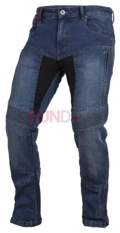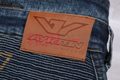 Druhá generace jeansových kalhot AYRTON 505 přichází s vylepšením v podobě nových CE certifikovaných protektorů LITE PRO, které jsou pružné, lehké, prodyšné a díky malé tloušťce i nenápadné. Díky vnější vrstvě ze 100% 12-ti uncového streč denimu Super Stretch jsou kalhoty komfortní. Rozšíření nabídky nadměrných velikostí pokrývá i extra nadměrné velikosti. Krátký zip YKK® #8 umožňuje propojení kalhot s bundou. Uvedené detaily dodávají těmto všestranným kalhotám ještě širší možnosti použití oproti minulé generaci. Sepraná tmavě modrá povrchová úprava denim obšívky se světlejším stařeným povrchem.