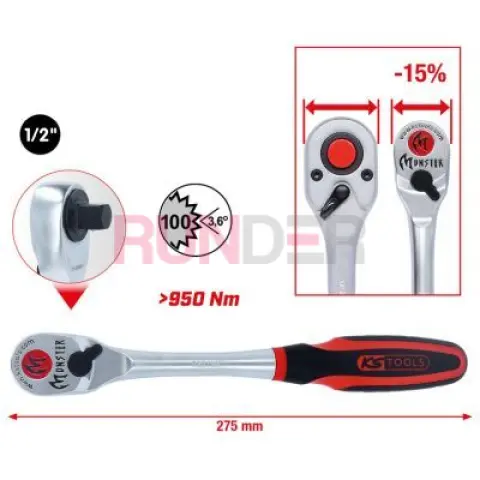 Zeptejte se nás ohledně produktu: Ks Tools - Monster ráčna s přepínací páčkou 100 zubů 1/2" 275mm